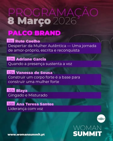 No próximo dia 8 de março de 2026, terei a alegria de participar no Woman Summit, um encontro que celebra a voz, a força e o percurso das mulheres.